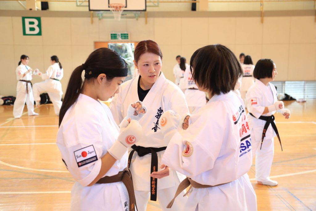 女子は山本コーチが、打ち合いの中での前足を使ったヒザ蹴りを伝授し、選手たちは熱心に技術を習得しようと励んだ。