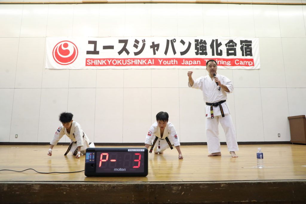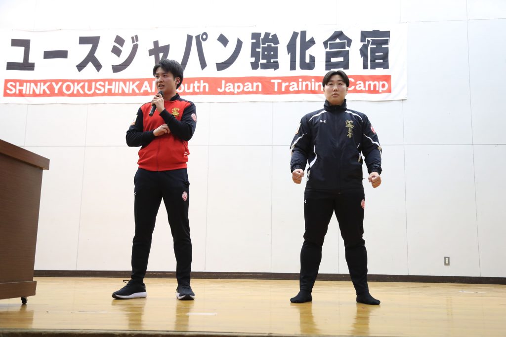三好副代表は「来た時のみなさんを見た時とは違って、やり切った清々しい表情を見ることができてうれしいです。空手家は強く優しく、思いやりがなければいけません。みなさんの左胸にある新極真会の4文字にかけてがんばってもらいたいです。我々も20年間合宿を行なってきましたが、これからの20年は皆さんが主役です。世界大会で絶対に王座を渡さないように。ユースの先輩方の後を追って、道場に帰ってもここで学んだことを来られなかった人に伝えてください。がんばってください」と激励の言葉をかけた。