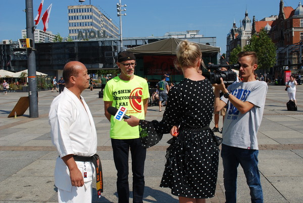 On Saturday morning, for the Karate Shinkyokushnkai promotion, a demonstration took place in the center of Katowice. Polish Television interviewed the instructors, and the coverage of the camp was broadcasted on television.