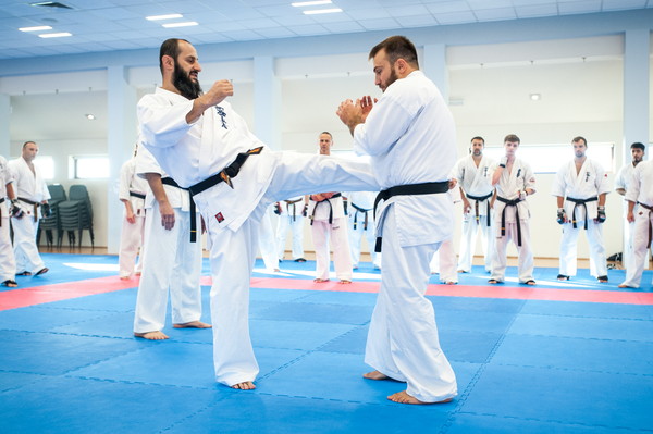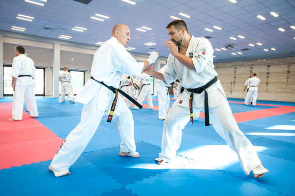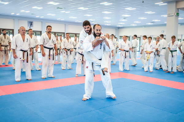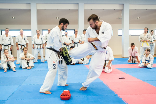 Shihan Karen Gyadukyan and Sensei Tariel Nikoleishvili were invited as special instructors for the kumite seminar organized by the Mazur Branch in Stara Wies on September 13-15. A total of 116 participants from Poland, Hungary, and Ukraine took part in the event. The guests demonstrated their concept of training and fighting, and drew attention to many details, especially in fighting techniques. Everyone trained hard in a good atmosphere. It was a great honor to host such great and experienced instructors, and the knowledge and philosophy they passed on will help the participants in their next step in Karate.