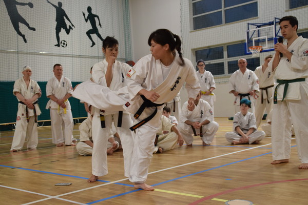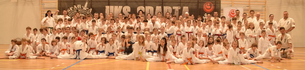 ポーランド及びウクライナから216名(一般部96名+少年部120名)が参加し、基本、移動、組手技術を指導していただきました。24日は黒帯&茶帯のみ(約30名)の特別稽古を1回、25日は少年部(1回)、一般部(2回)の稽古を行ないました。空手の技術や組手の細かい部分についても分かりやすく説明していただけたことで、とても勉強になりました。