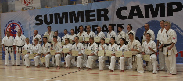 92名が参加し、1日4回の厳しい稽古に全力で取り組みました。主催者からはレミギュシュ・カラピンスキー六段、エウゲニウシュ・ダディブグ六段、ジャセク・ラモト五段、マリウシュ・マズール五段、マレック・クレイプシオ五段、ボイチェフ・ラジェヴィッチ四段などが指導にあたりました。キャンプ中、26名が昇段審査(初段~参段)に挑戦しました。早朝稽古では大カスプロヴィ山(標高1,987メートル)のランニングを行ないました。