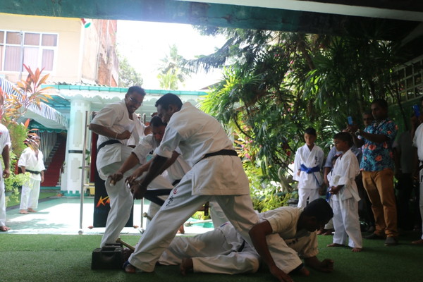 スリランカ支部は7月12日にコロンボにあるマウント・ランカ・ホテルで全スリランカ空手演武会を開催しました。このイベントは新しく設立された「ハリ・デ・T V」の依頼により、スリランカ本部道場が主催、コロナウイルスの拡大により3ヶ月の道場閉鎖後に行われた初めての催しとなりました。制約のある中、参加者、招待者合計90名が集まり、様々な演武が披露されました。演武会の模様はハリ・デ・T Vチャンネルで全編放送される他、後日YouTubeでも視聴可能となります。