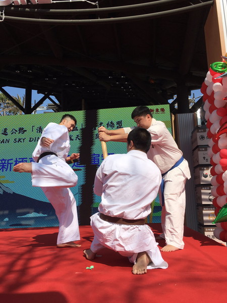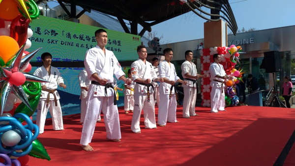 1月18日(土)、台湾中部・台中市の清水(チンスイ)サービスエリア(台湾最大のSA)にて、日台合同事業によるリニューアルオープンの開会式、並びに同名である日本・新東名清水PAとの姉妹提携締結の調印セレモニーが開催され、台湾支部が演武を行いました。