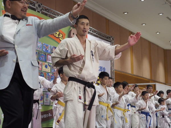 また、最後には「みんなで空手」と題して会場の方々に基本動作を紹介し一緒に行いました。