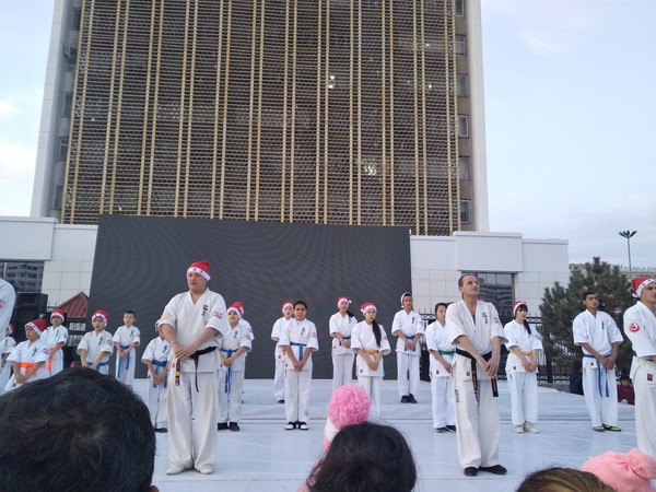 After training, by invitation, the Karatekas went to a Christmas Show held near Navoi city.
