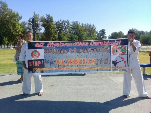 薬物使用の悪影響について社会の注目度を上げることを目的としてために行われたこのマラソンイベントには、ナヴォイおよびサマルカンド地区から約100名の大人や子供が参加し、空手のデモンストレーションも披露されました。