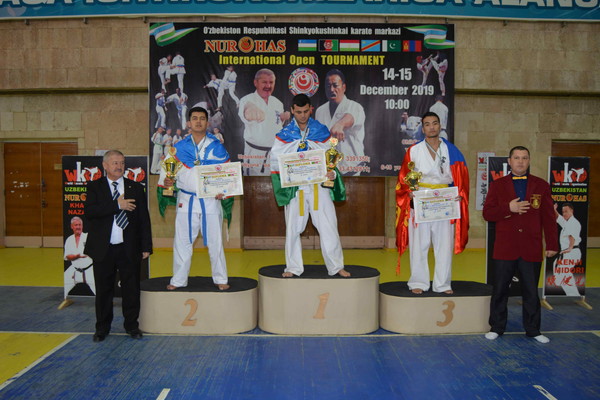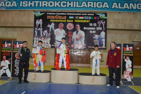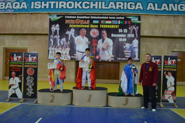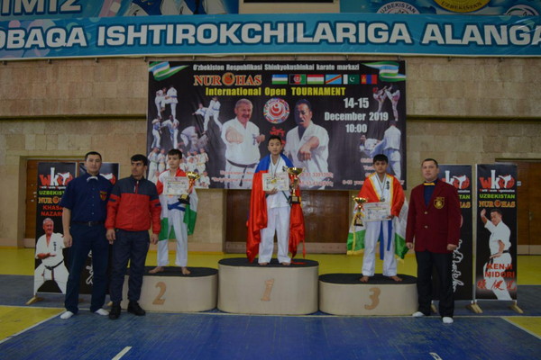On December 14th, the 9th International Cup among Children and Juniors of the Center of Shinkyokushinkai Karate Republic of Uzbekistan “Nur-Has” was held. There were 120 competitors from different regions of Uzbekistan, Tajikistan, and Mongolia. It was the first time for the Mongol Team headed by Branch Chief Gombogerel Batmunkh (3rd Dan) to visit Uzbekistan. In this tournament there were 18 weight categories.