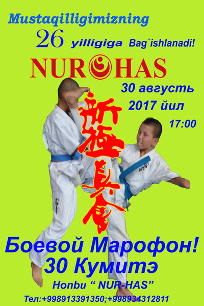 On August 30th, the Center Republic of Uzbekistan Shinkyokushinkai Karate “Nur-Has” organized “the Fight Marathon” and “the Running Marathon” at Honbu in Navoi city, Uzbekistan.