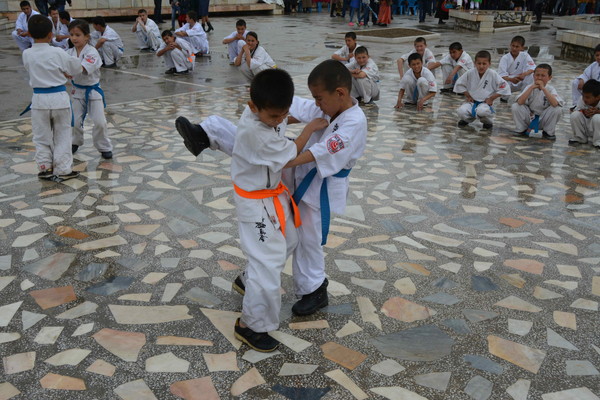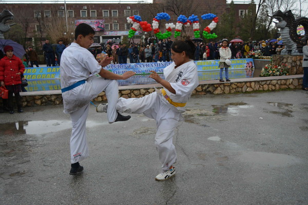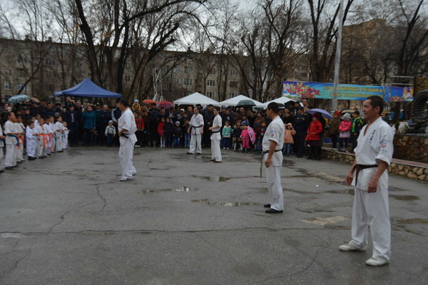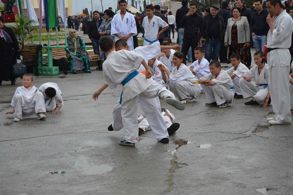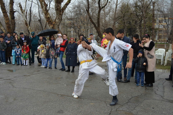 In spite of the rain, the members of the Center Shinkyokushinkai Karate “Nur-Has” demonstrated Karate performance to the audience. Young Karatekas have shown the skills of Shinkyokushinkai Karate gained from the regular persistent trainings.