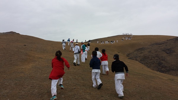 山頂に着く頃には雨もあがり、自然の中で二時間に渡る稽古を楽しみました。