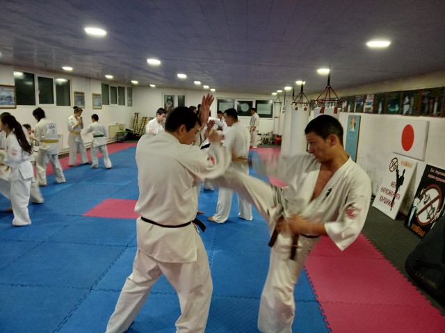 The participants were tested if they can demonstrate themselves as a good model to their students who are learning Karate in our center. The main trainer of Kumite sparring and Kata was Sensei Mutal Nazarov (4th Dan) who showed others right bearings, and exchanged of full contact techniques.