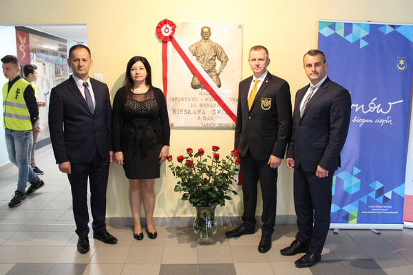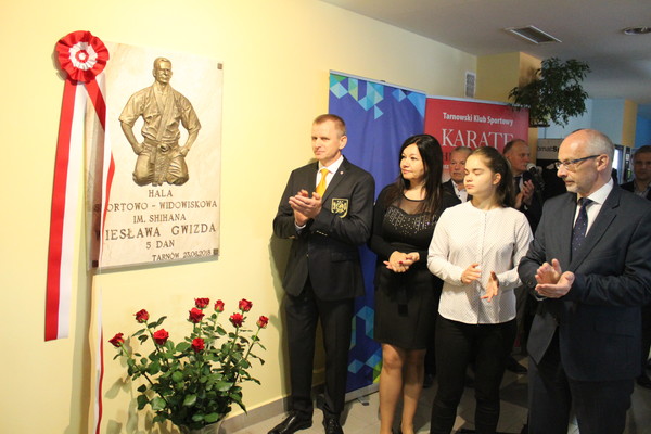 On June 23, 2018, the ceremonial unveiling of Shihan Wiesław Gwizd’s memorial plaque took place at the Sports and Entertainment Center of Tarnow City. This event was initiated with the naming of the Shihan Wiesław Gwizd hall during one of the sessions of the Tarnów City Council. Wiesław Gwizd’s memorial plaque was unveiled on the second anniversary of his death. Unveils were made by: Shihan’s wife – Mrs. Barbara Gwizd with daughters Klaudia and Adrianna, director of the Department of Sport of the City of Tarnów – Marek Baran and the President of the Polish Shinkyokushin Karate Federation – Shihan Remigiusz Karpiński. The ceremony was attended by Shihan’s family, friends and invited guests.