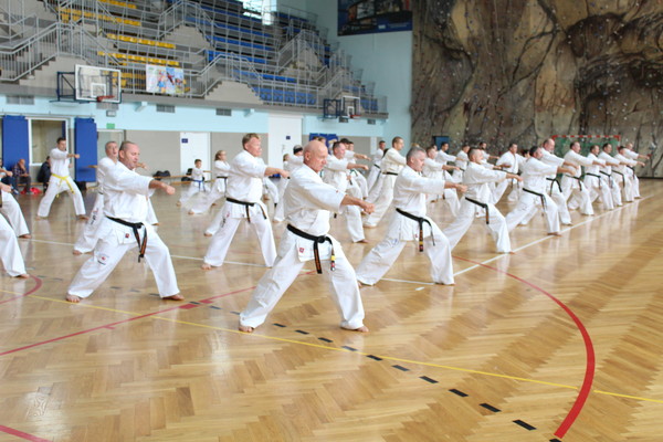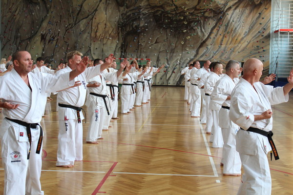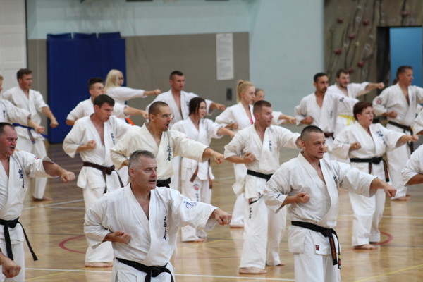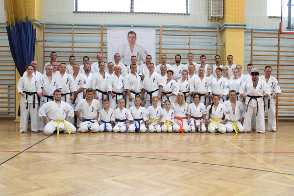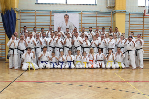 ポーランドの各地区から約250名が参加し、ご遺族が見守る中、タルヌフ市スポーツセンター内の記念碑の除幕式が行われました。第二部では参加者による演武を行ない、第三部では レミギュシュ・カラピンスキー国代表/支部長、ボイチェフ・ラジェヴィッチ支部長の号令のもと、全力で稽古に取り組みました。 最後は、2016年6月21日に58歳で急逝したグヴィズド支部長への思いを胸に、58本の突きで締めました。